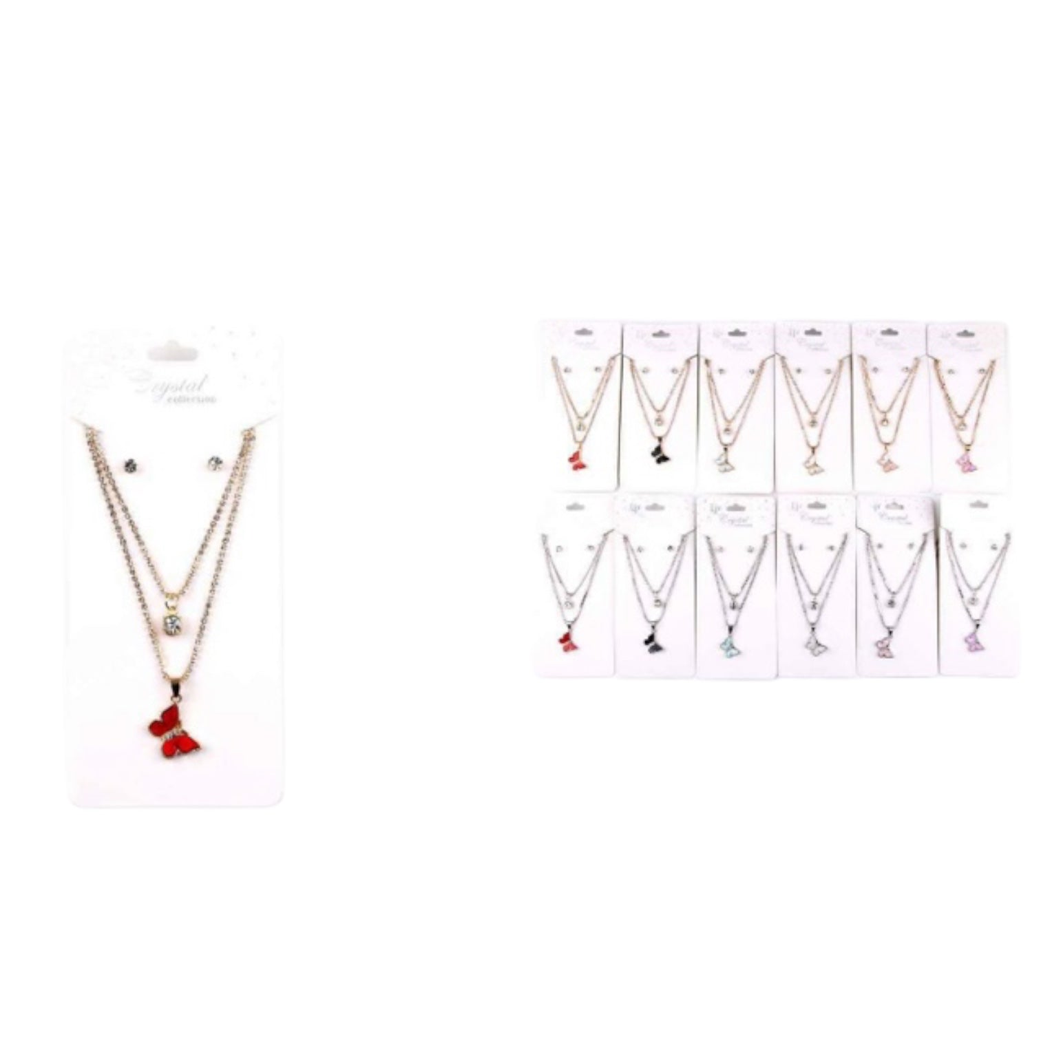 12PCS PACK 2 LAYER BUTTERFLY NECKLACE & EARRING SET YNK-2453